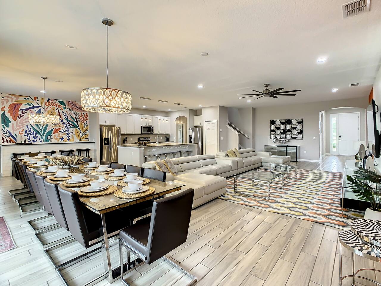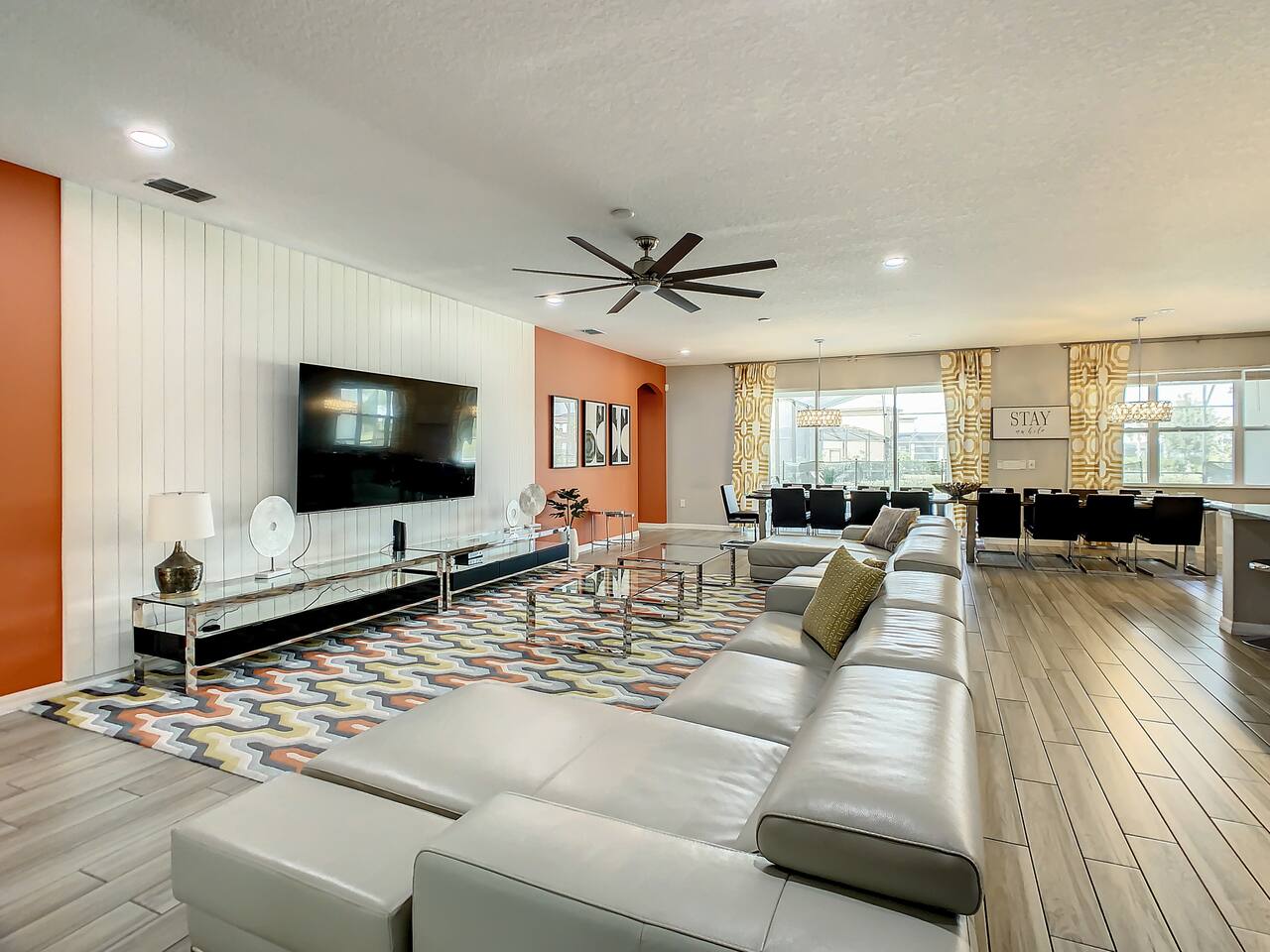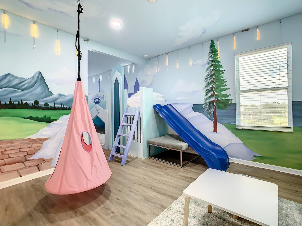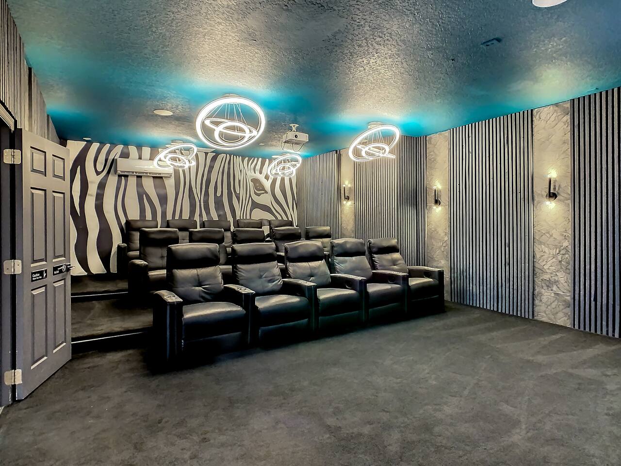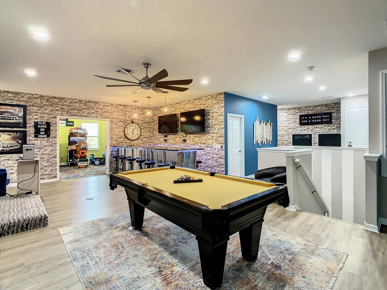 We aren’t kidding when we say most guests would rather spend time at this home than anywhere else in Orlando. This beautifully designed themed home is both spacious and comfortable. Private pool and spa, in-home theater with large screen, game room with Virtual Reality, billiard room, karaoke bar, kids' playroom, multiple themed rooms with televisions, and seven suites with king beds and private bathrooms…phew! Too much to name in this incredible home. Perfect for large family gatherings, church groups or corporate events. Guests have the option to purchase clubhouse access for even more pool, slide, lazy river, and fitness center action for under $50 for your whole stay.