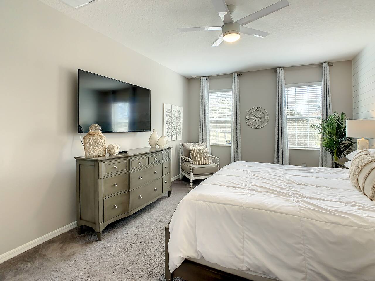 There is a guard station to enter the neighborhood. All vehicles must use the left lane when entering and have proof of reservation to be allowed in. The driveway can accommodate 3 vehicles as long as they don’t impede the sidewalk access. Street Parking is allowed in designated parking spaces only, marked with 2 white lines. Only registered guests may park overnight; limit of 5 per house. (Making 8 in total) Street parking is first come, first served. Vehicles improperly parked or in a space marked for another unit are subject to immediate towing by the HOA. There is no parking allowed on the grass or common areas or any lot. Sidewalks and aprons must not be blocked. Commercial vehicles, RVs, Trailers, ATVs, Motorcycles, Jet-Skis, and Boats are only allowed to enter temporarily for loading and unloading. Any damage to sod, landscape, and/or irrigation on homes will be the charged to the guest by the HOA. Parking is available at the clubhouse until 11:00 PM