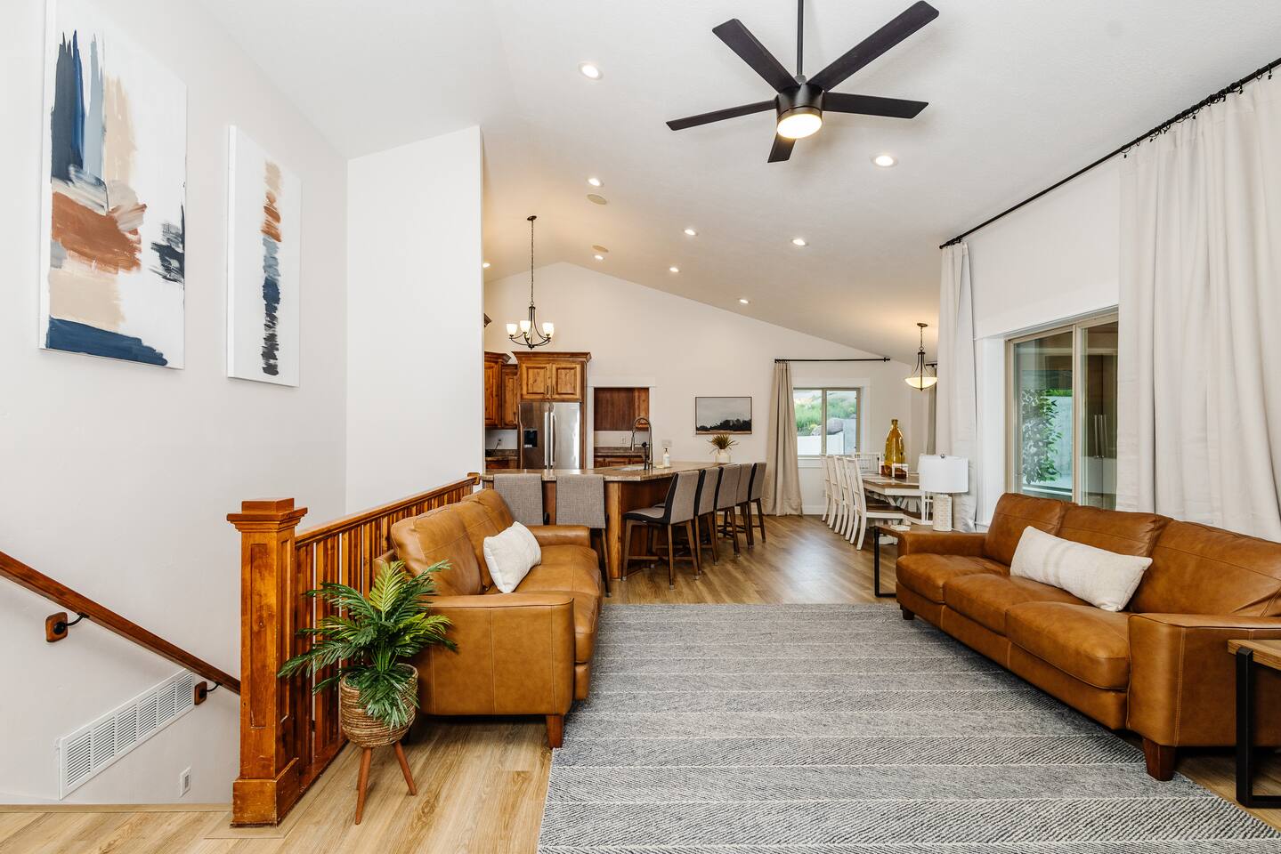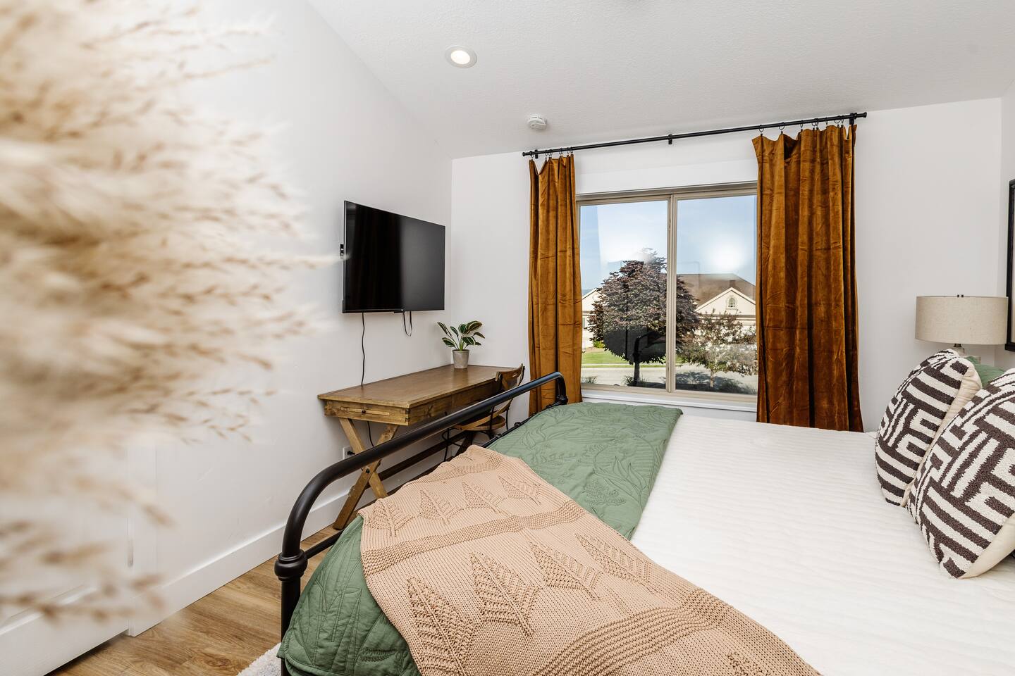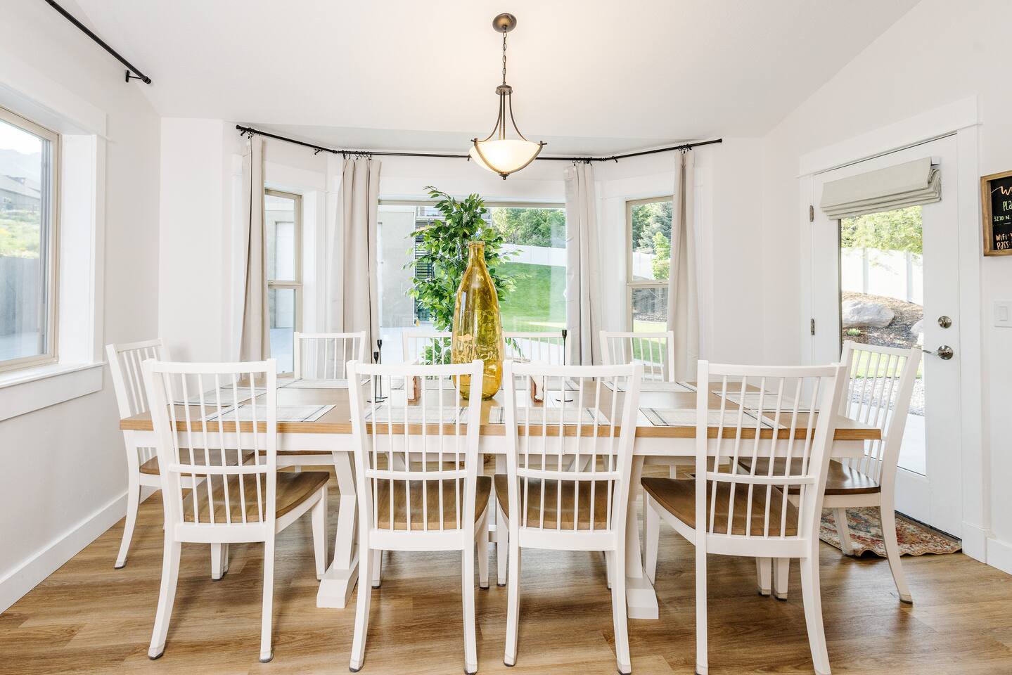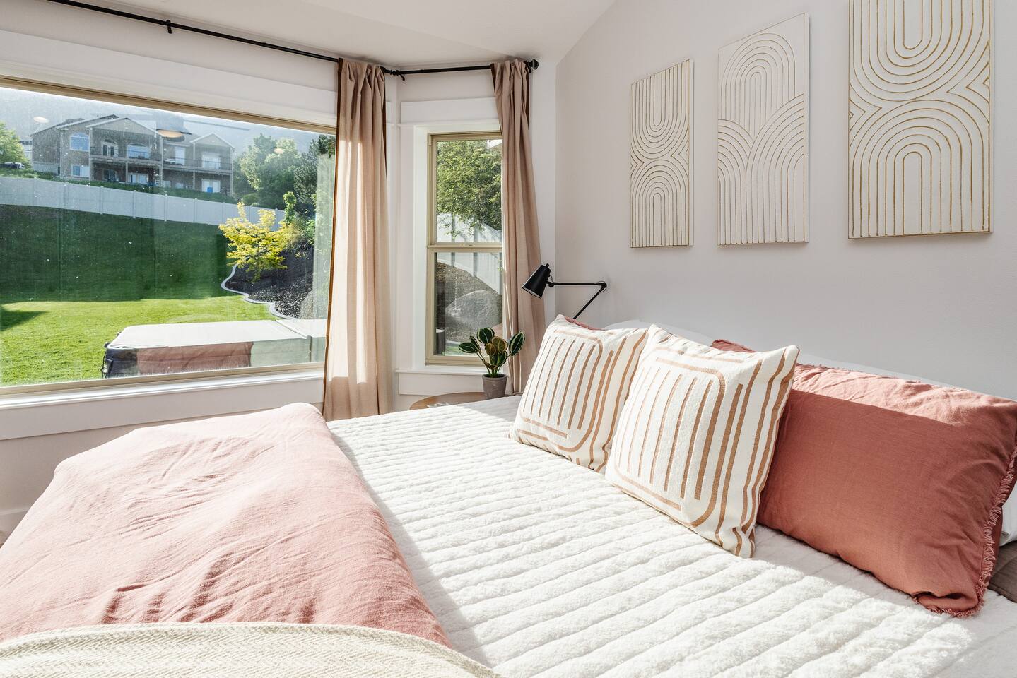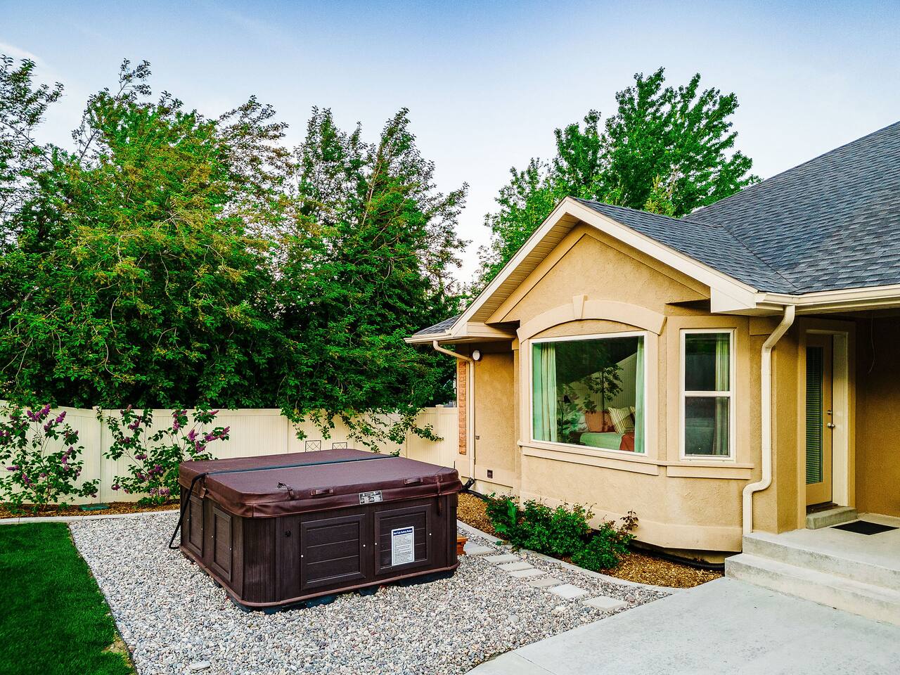 An Airbnb like no other in the upper hills of Logan. This professionally decorated home has a main floor with 4 bedrooms and 2 full baths, a large open living, dining, and kitchen area and full laundry. Mattresses and pillows are luxurious- you will have an excellent night’s sleep! Especially if you take a soak in the jetted tub or outdoor hot tub first. Clean and new furniture throughout including flatscreen TVs in every bedroom and an office area in the front room. Great WiFi is included and you can stream your own channels or use ours. An extremely well-appointed kitchen will make you feel at home and extras like a gas grill/smoker and high chairs with kids dishes makes it over the top. Included are an extra fridge, ice machine, and tons of folding tables and chairs for outdoor use. A two-car garage with epoxy coated floors is yours to either park or spread out with tables and chairs for your entire party. The 9-person saltwater hot tub will soak every care away! You will be staying in an upscale neighborhood with amazing views of the valley and. Trails are steps away and wildlife nearby. Night sky views are incredible and sunrise/sunsets are beautiful up here. Skiing at Cherry Peak is 20 minutes away Beaver Mountain Ski Resort is 45 minutes Hyrum Reservoir 25 minutes USU Campus 7 minutes Bear Lake 60 minutes